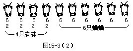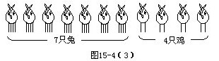 解:这是古代的民间趣题,叫“鸡兔同笼”问题.见图15-1(1)、(2)、(3).